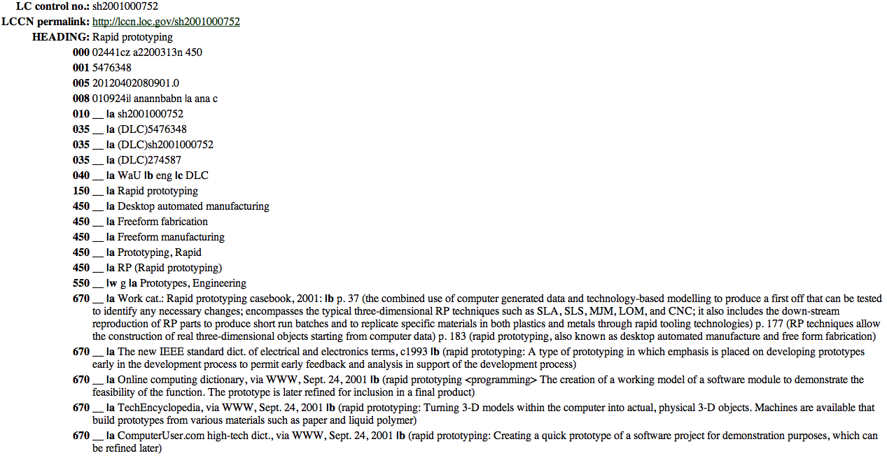 Parsing out rapid prototyping from 3D printing isn’t too hard, especially with the help of the robust scope notes in their LC authorities records: