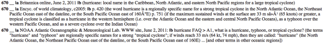 And a closer screenshot of the notes that describe hurricanes. Enough to be helpful in knowing what storms are termed hurricanes.